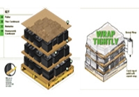 Load Lead acid batteries 3-5 layers high with cardboard between each layer, and stretch wrap. Make sure to catch the top of the pallet to help anchor it.