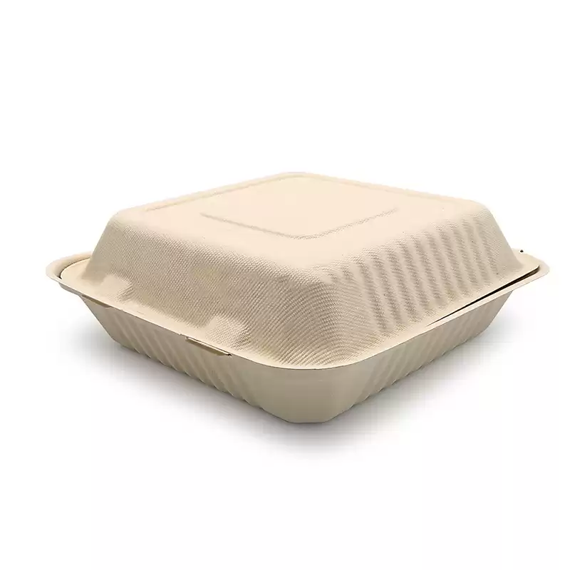 Disposable 9 Inch Paper Pulp Sugarcane Burger Box