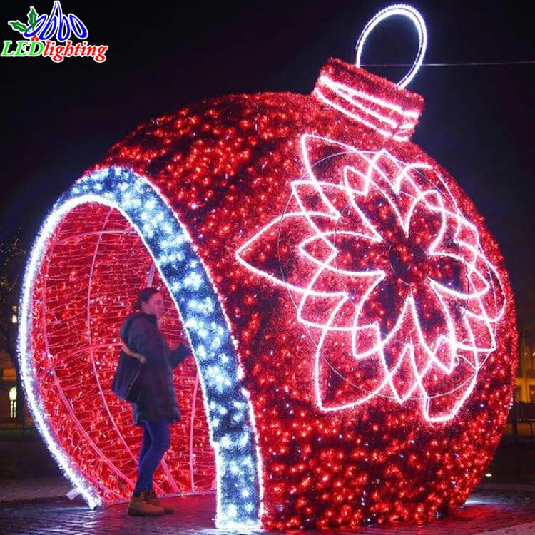 This large lighted bauble is made by metal frame or aluminum frame,and led rope light and led string light.