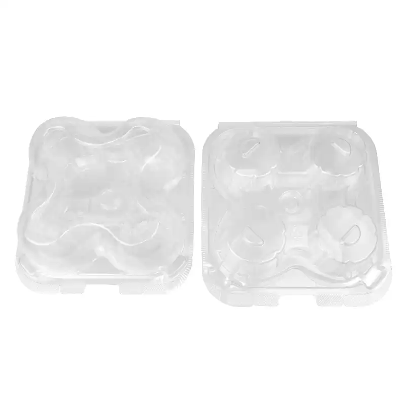 4 Cavities Clear Plastic Cupcake Clamshell Containers