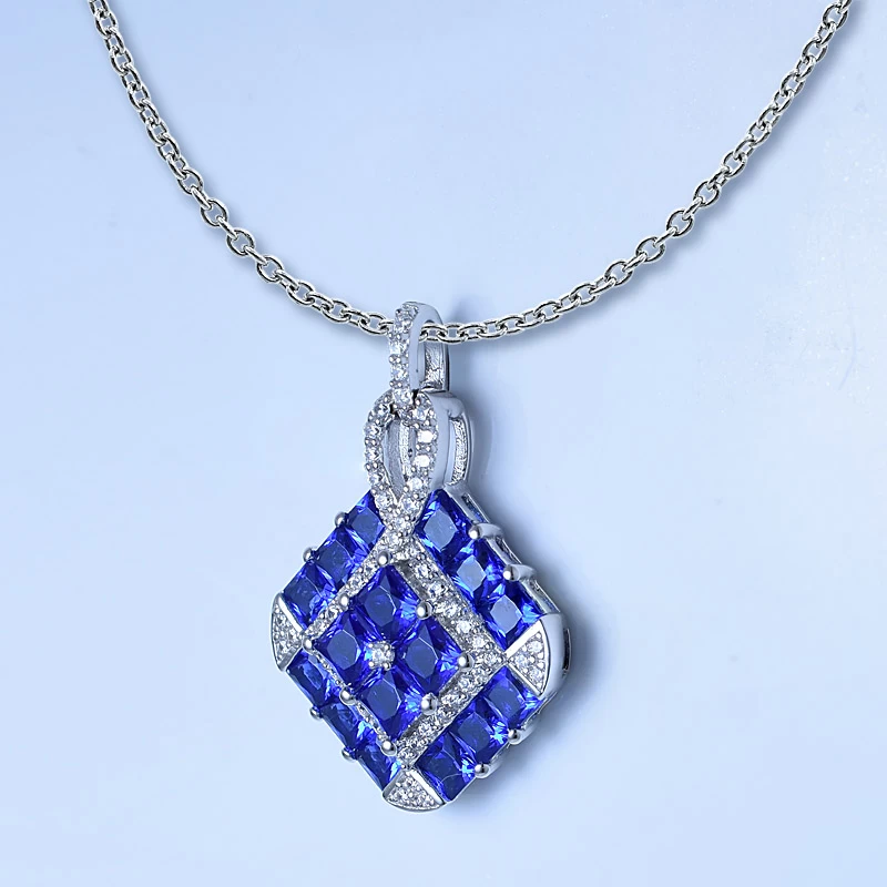 925 Sterling Silver Simulate Blue Sapphire Cocktail Pendant With Chain