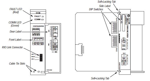 The Direct Communication Module, Catalog Number 1747–DCM, is used to connect an SLC 500 Fixed Programmable Controller with expansion chassis or any SLC 500 Modular Programmable Controller to a supervisory Allen–Bradley Programmable Controller via the RIO Link, thereby providing a distributed processing system. The DCM occupies one slot in any SLC 500 chassis.
