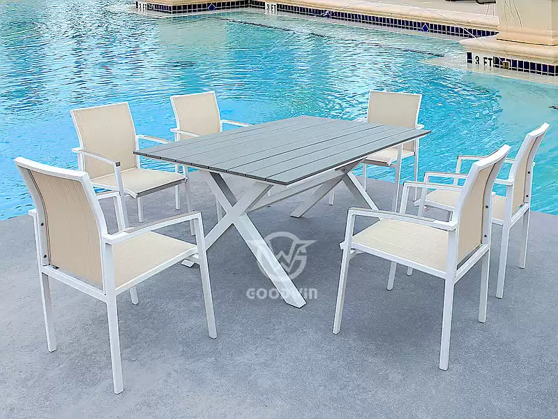 All Weather Aluminum Frame Dining Set With Rectangle Table
