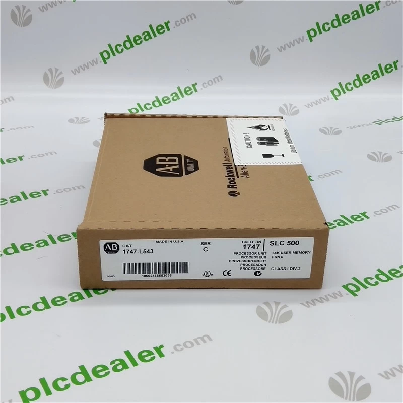 Full Description: Allen Bradley 1747-L543 SLC 500 SLC 5/04 CPU Processor, 64K Memory, DH+ & RS-232 Communication Ports