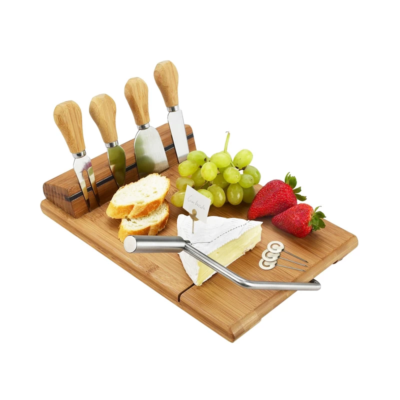 Bamboo Board with Wire Cheese Slicer and Knives Set