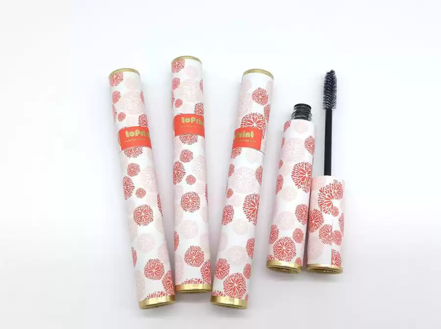 Material: Middle Kraft Paper Core+Inner Coated AL Foil Liner+Outside 157g White Kraft Paper with Printing logo+Glossy Varnishing+Metal Buckled Lid for the Cosmetic Mascara Paper Tube With Brush