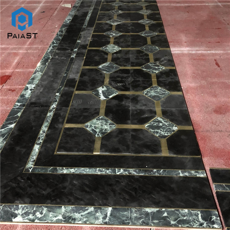 Black and Green Marble Waterjet Flooring Pattern