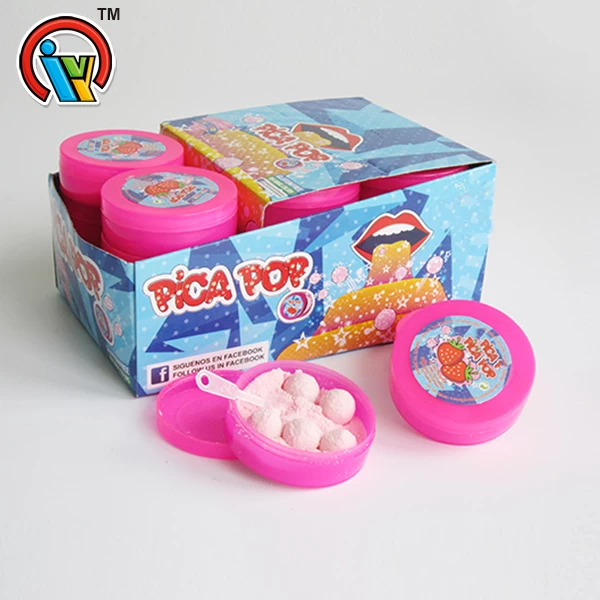 This product which called bubble gum with powder candy it is popular with customers. This lovely box contains ball shape chewing bubble gum and powder candy. And there are apple flavor, grape flavor, strawberry flavor and other flavors for your choice. For the taste, you will feel the chewing powder of the bubble gum and the acidity of the powder candy is enough to make you remember this product.
