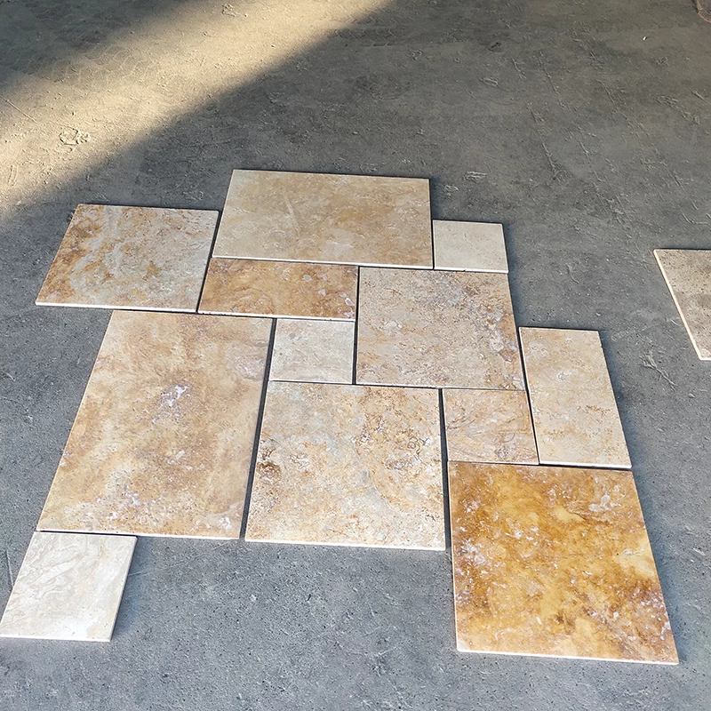 Bulk french pattern floor tiles tumbled and honed and chiseled limestone or marble