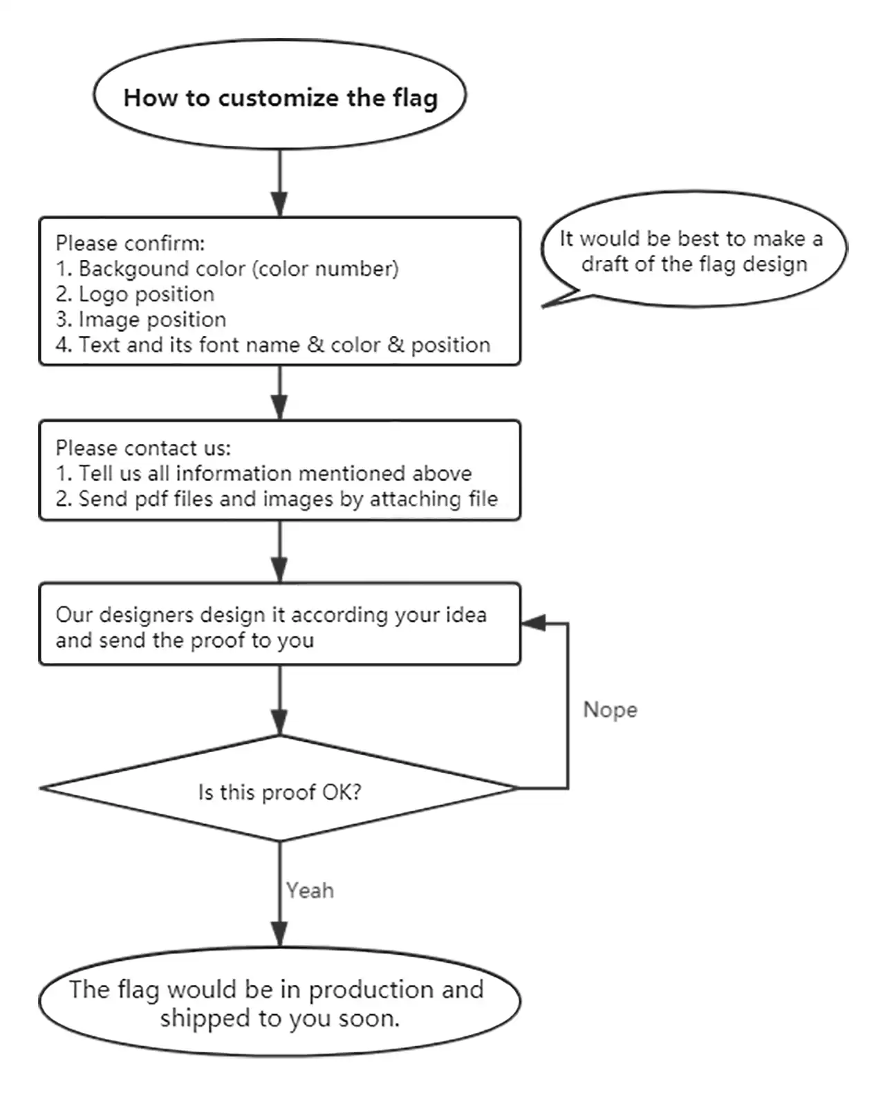 2. If you let us design these flags, please follow the flow chart to customize them.