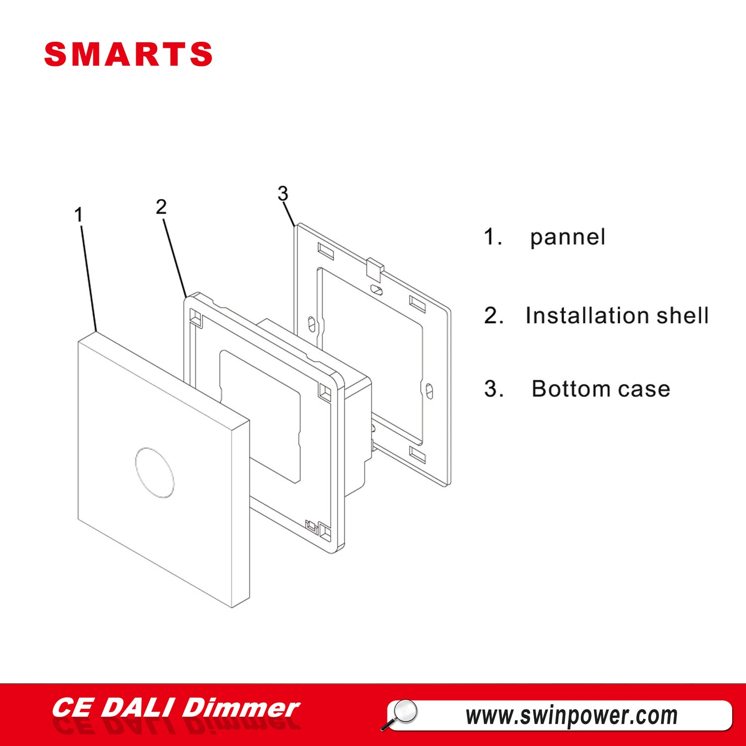 Smarts Electronics SMT-R-M1 is dali dimmer switch which are suitable for Europen. Those wall light dimmer switch are overload & overheat protections, make your home safer. Single live wire control, easy to install, replace the old switch directly.