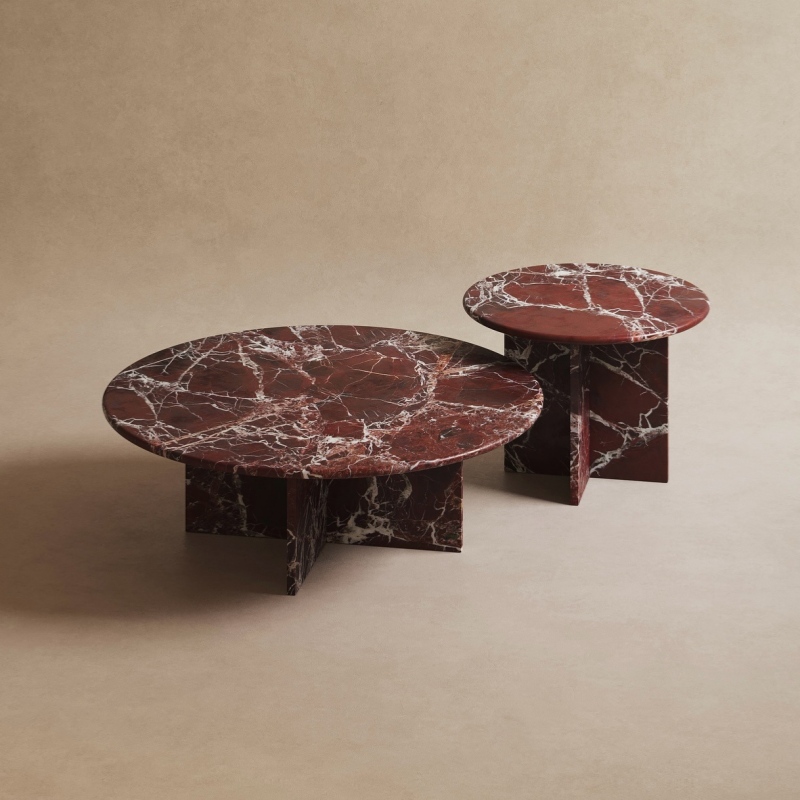Rosso Levanto Marble Coffee Table Set