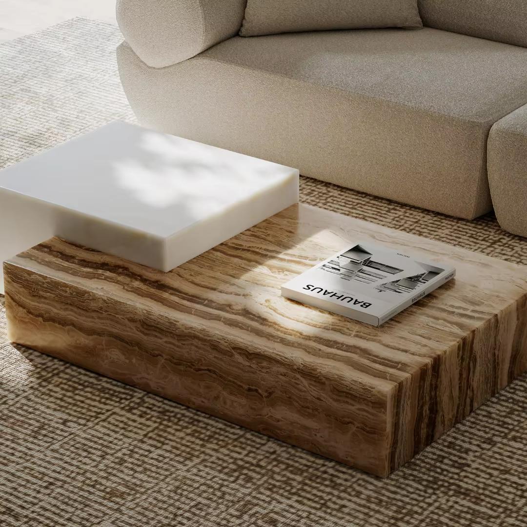 The simple square shape, paired with sturdy, stable legs, embodies the sleekness of modern design while maintaining practical functionality. Whether paired with a light luxury, wabi-sabi, or minimalist style, it creates a striking finishing touch, adding a touch of natural elegance and tranquility to any living space, allowing you to connect with the natural textures and experience a unique spatial atmosphere in your daily life. Honed Finish Dimensions: 900x900x340mm Lead Time:6-8 Weeks For custom sizes, or onyx colors, please contact us by email. Every piece is hand finished, using natural marbles which feature slight variations in grain and texture, making each one exclusive and unique You can read about why we choose each stone, its origins and characteristics here.