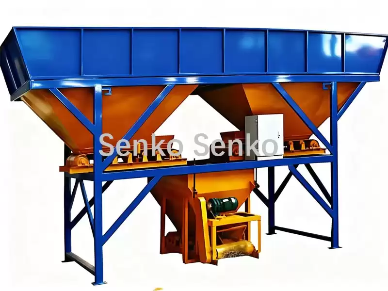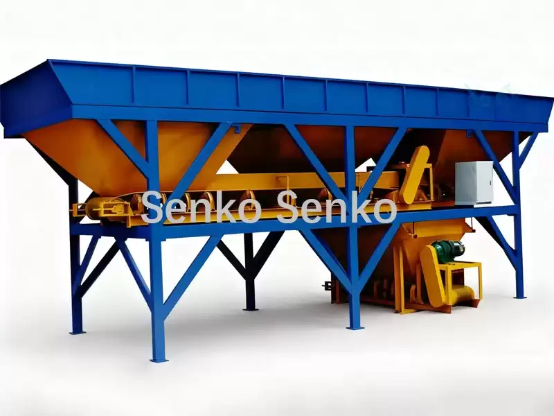 The concrete batching plant and mixer are equipped with fully automatic control. This series of batching plants uses electronic cumulative metering, centralized control in an electrical control cabinet, and digital display. It features high metering accuracy, fast batching speed, strong control performance, and high reliability. Feeding equipment can be of various types, including loaders, belt conveyors, grab buckets, and ground pushers.