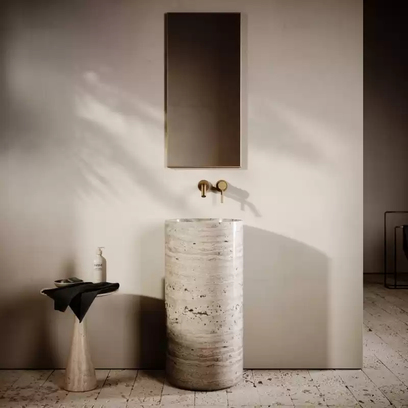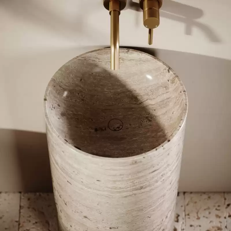 Cylindrical Travertine Pedestal sink