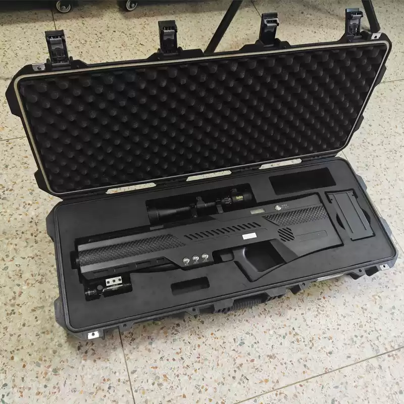The device has the characteristics of small size, light weight, easy to carry and handheld work, and can start working at any time. It can be used for targeted strike and countermeasure management against UAVs in all aspects, so that they can lose flight control instructions and satellite positioning information and cannot fly normally, and achieve the control effect of forced landing and dispersal of black flying UAVs. It can form a network with fixed countermeasure stations, mobile vehicle-mounted countermeasure stations, handheld countermeasure devices, detection systems, low-altitude radar systems, photoelectric tracking systems and other systems.