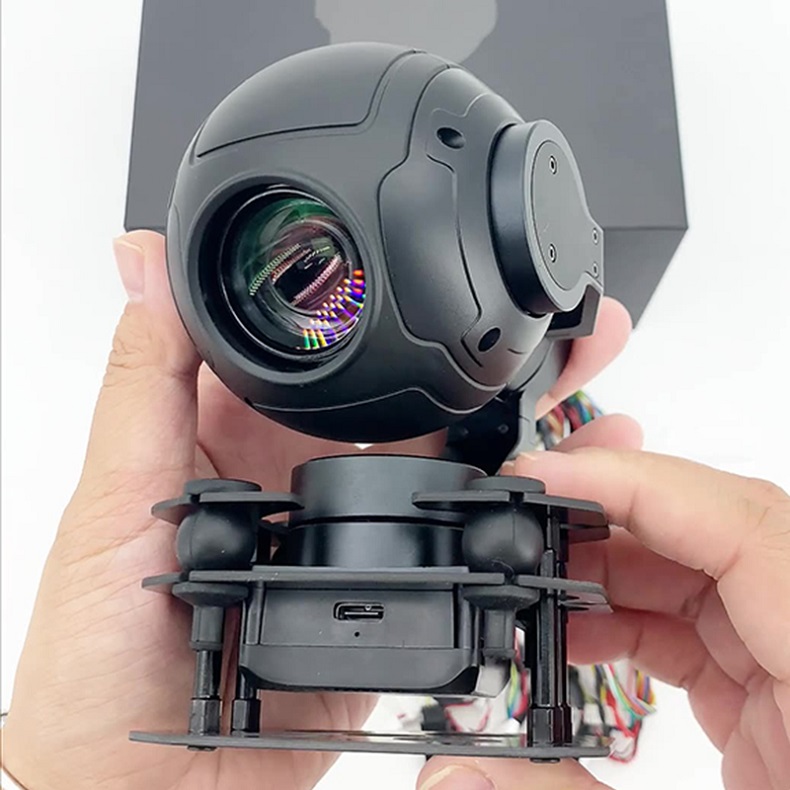 The LQ-4 four light pod integrates thermal imaging, zoom, laser ranging, and wide-angle modules, achieving all-weather precise detection through multi-source data collaboration. Equipped with a high-resolution thermal imaging system and long-range distance measurement function, combined with high magnification hybrid zoom and high magnification optical zoom technology, combined with large-sized photosensitive elements to support ultra high definition image recording, and with a high-definition wide-angle lens to expand the field of view. The built-in intelligent algorithm platform provides dynamic target tracking capability based on deep learning, and the heading axis global rotation design adapts to complex operational angle requirements. Optimizing the shock absorption structure and modular interface significantly improves environmental adaptability, supporting the expansion and integration of multiple devices. With high collaborative control algorithms and stable gimbal systems, it can maintain clear imaging and precise control in dynamic scenes, and can be widely applied to professional level mounting requirements in fields such as rotary wing aircraft, vertical takeoff and landing platforms, and intelligent mobile robots.