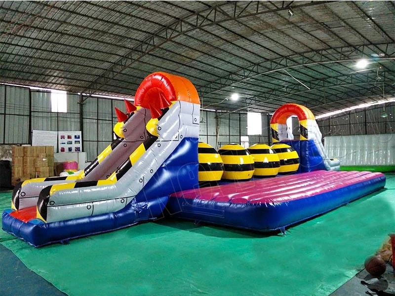 Product: Exciting Inflatable Wipeout Games Obstacle Course with Slide