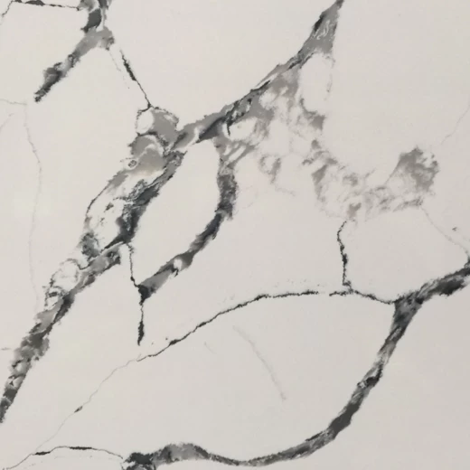 This is the newly design of manufactured quartz slab from our factory. It mainly comprises of black and grey veins with white base color, which looks very modern for the interior decoration. Mostly attractively, it looks very natural, but without problems of natural marble stone.