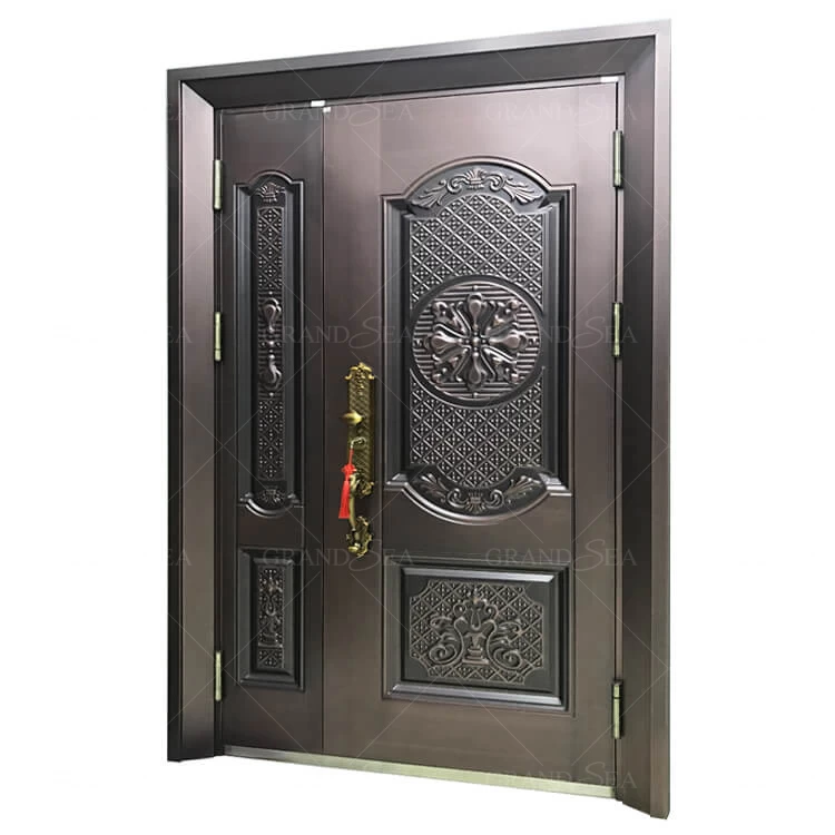 Security steel doors are widely use on residential and commercial space, for GRANDSEA GSD-A-42 model cast aluminum design security steel door have beautiful view, strong and solid material, good for main entrance front door.
