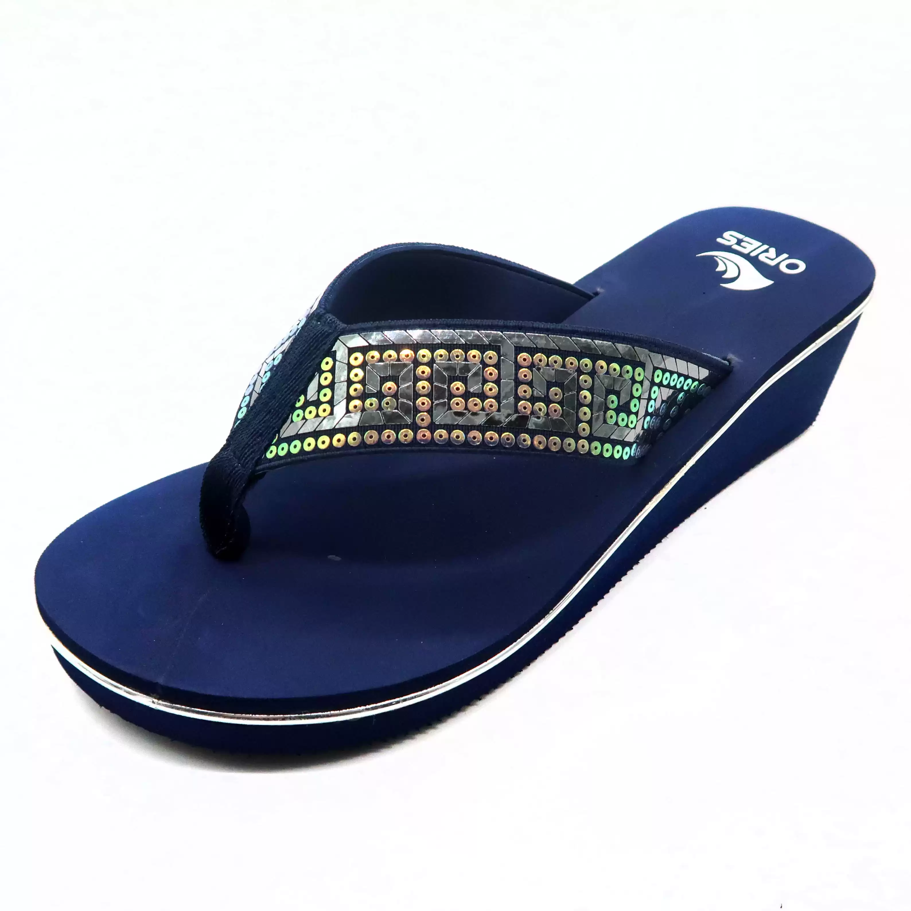 Soft EVA insole with shining powder printing, stylish lady.