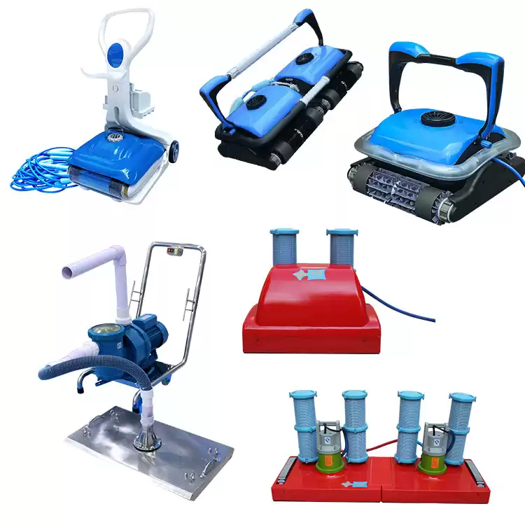 Swimming pool cleaning accessories normally includes robotic cleaner, trolley, cleane vacuum, wall brush, leaf net, pole, life hook, lifebuoy, etc.