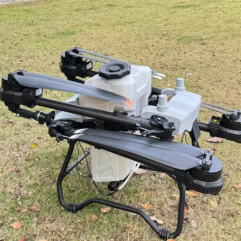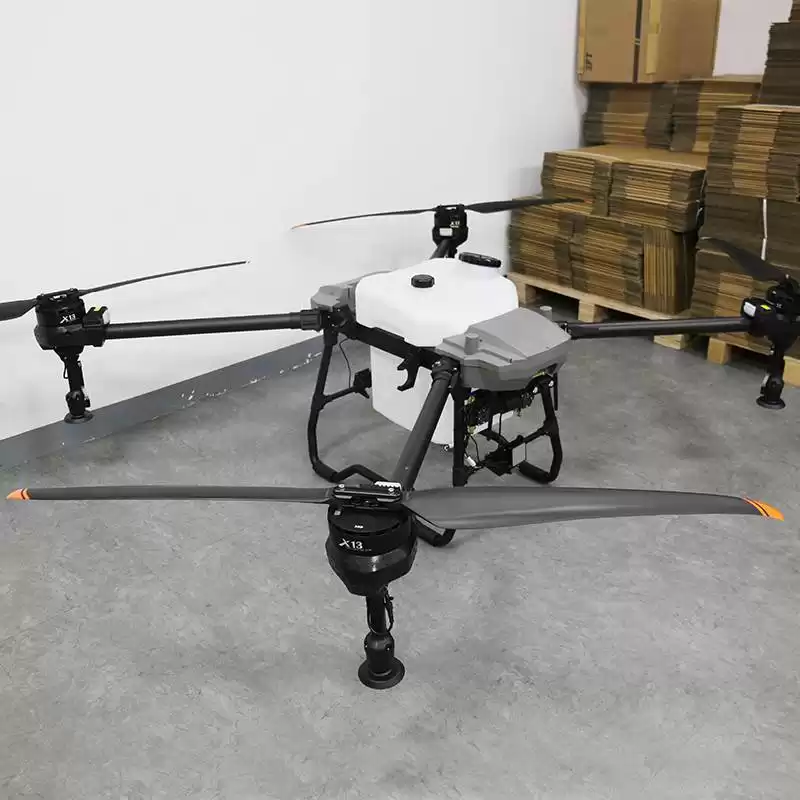 The HN-50 plant protection drone is equipped with 56 inch high-strength propeller blades, providing strong power. It has a large flow impeller pump and a water-cooled centrifugal nozzle, which can quickly switch between sowing and spraying modes. The nozzle and impeller pump that can simultaneously regulate the atomization particle size have high flow rate and efficiency. The flight control system has been completely upgraded, and the human-machine interaction is smooth and effortless. Equipped with precision ultrasonic flow meters, sensors and liquid separation detection, accurate and stable. Adopting an integrated material box, quick replacement and automatic recognition by the system. The spreader discharges smoothly, the metal disc is sturdy and wear-resistant, and the discharge is uniform. Excellent internal structure, resistant to falls and easy to maintain.