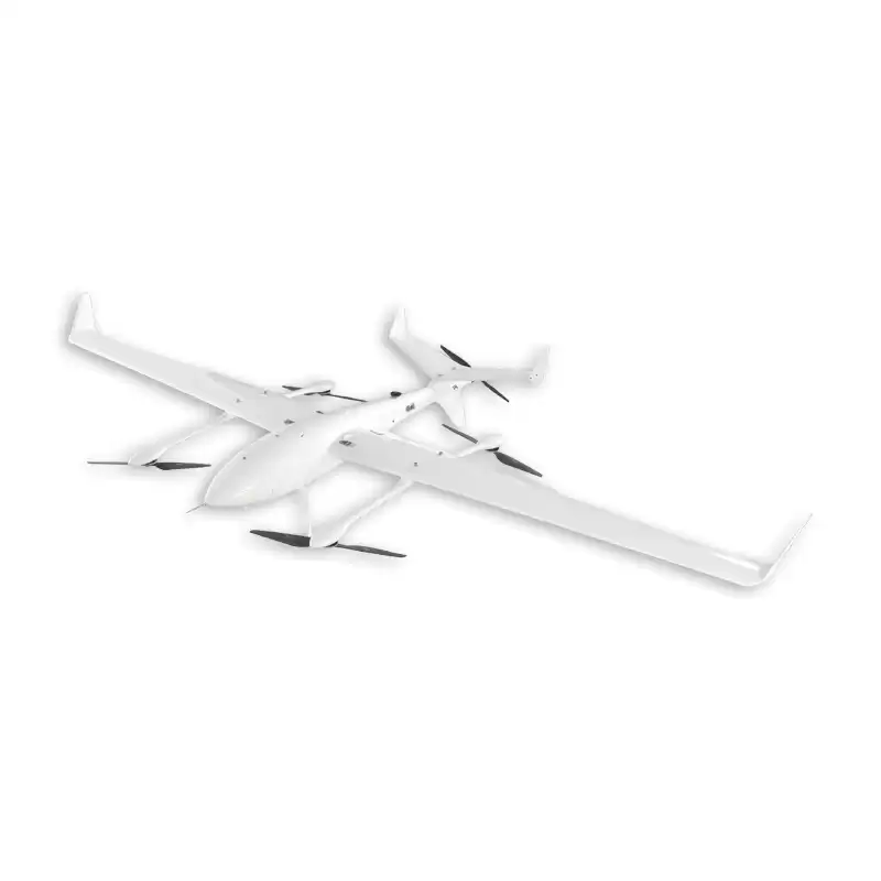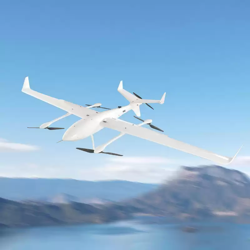 This model ingeniously integrates a dual power system of rotor and fixed wing. Four sets of brush-less motors drive the rotor to achieve vertical takeoff and landing, breaking through terrain limitations. After switching to fixed wing mode, single motor propulsion provides efficient cruise capability. This design is particularly suitable for working in narrow spaces such as mountainous areas and cities. It can quickly respond to task requirements, extend flight time, and cover a wider range of work areas.
