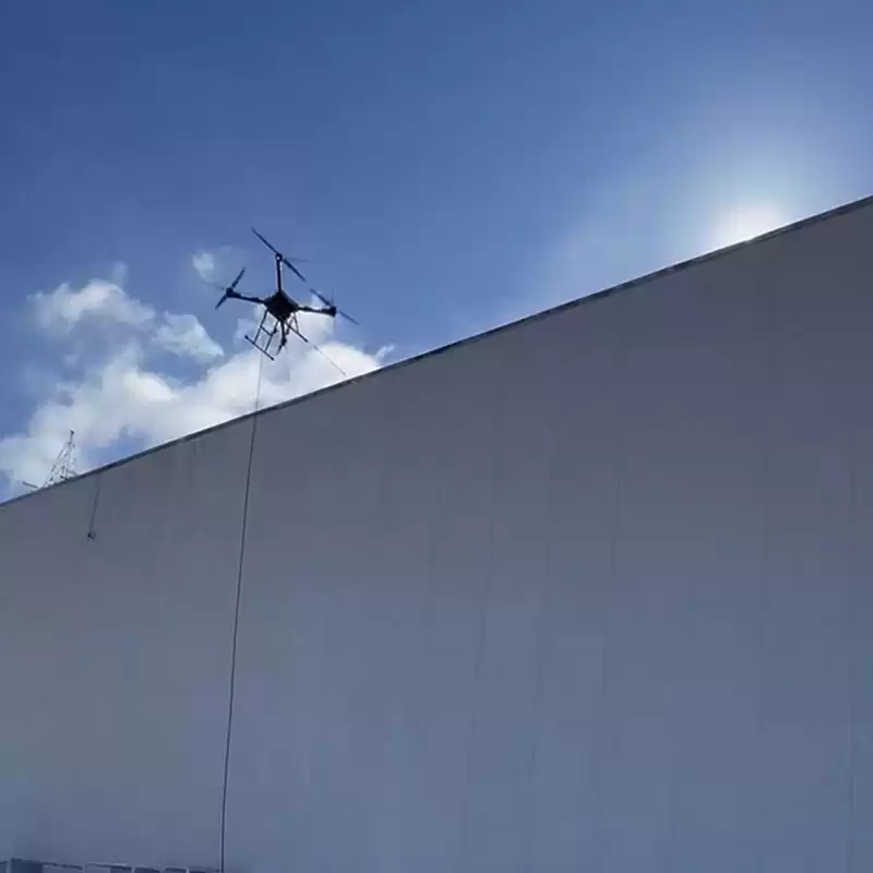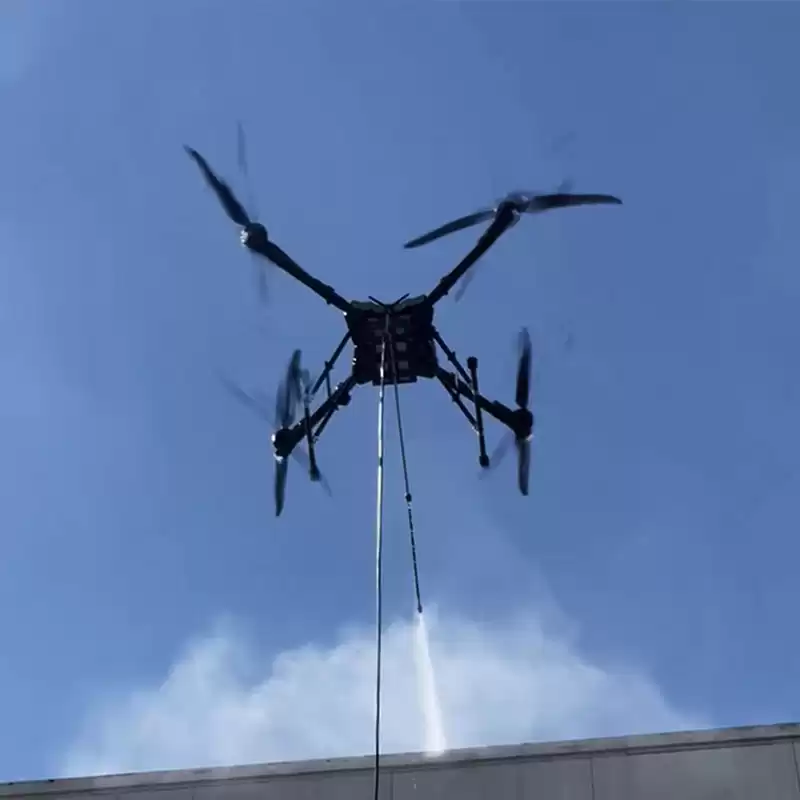 This cleaning drone is made of aviation carbon fiber and aviation aluminum materials. Not only does it significantly enhance the safety of operations, allowing operators to avoid dangerous areas such as high altitudes, but it can also quickly cover large areas, reducing the input of manpower and time. In addition, this drone is highly flexible and can easily reach areas that are difficult for humans to reach. It also has excellent waterproof and wind-resistant performance, making it perfectly suitable for various scenarios such as cleaning the exterior walls of high-rise buildings, wiping building Windows, and maintaining roofs and solar photovoltaic panels. Its operation design also fully takes into account the user experience and is very user-friendly.