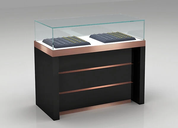 Classic wooden and glass jewelry showcases for sale