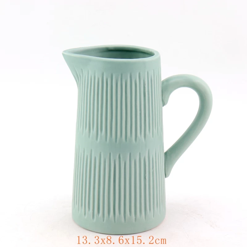 The edges of our Organic Shaped Pitcher are lightly stretched to form a silhouette that isn't perfectly rounded. The strikingly simple result makes this pristine piece practical for everyday use. Different debossed pattern and matt finish make it feel solid and nice, good for home decorative as well.