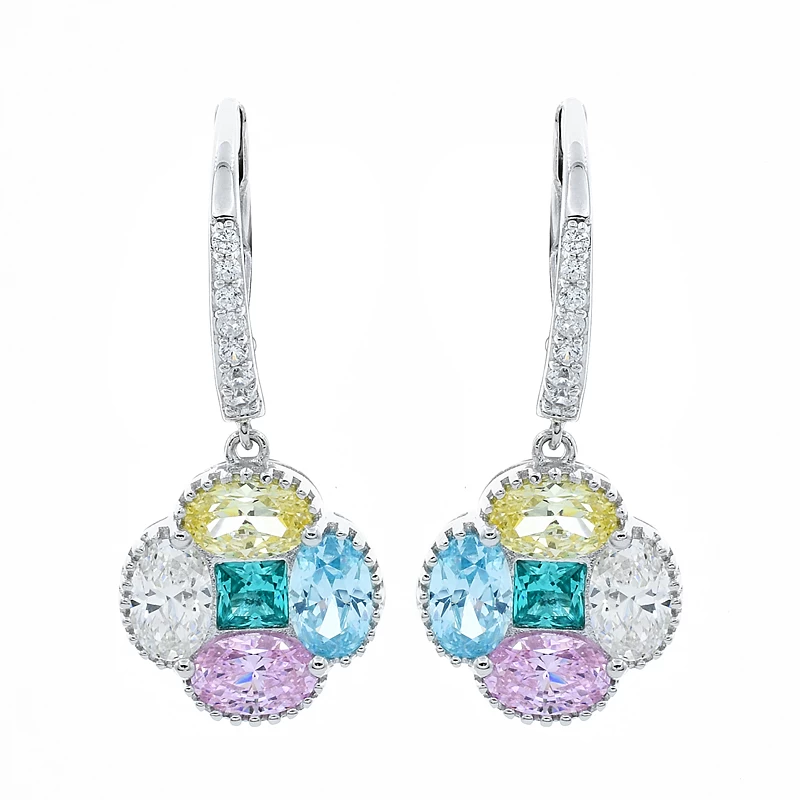 Multicolor Four Leaf Clover Silver Ladies Earrings