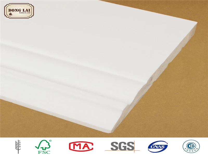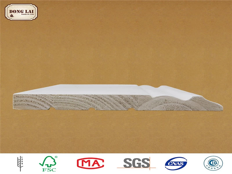 wood with uniform texture, specification and size can be standard or customized with max length is max lengh 6,000mm and max width 1,220mm. Donglaichinese fir prime wood baseboard mouldings go with environmentally friendly water-based paint without formaldehyde