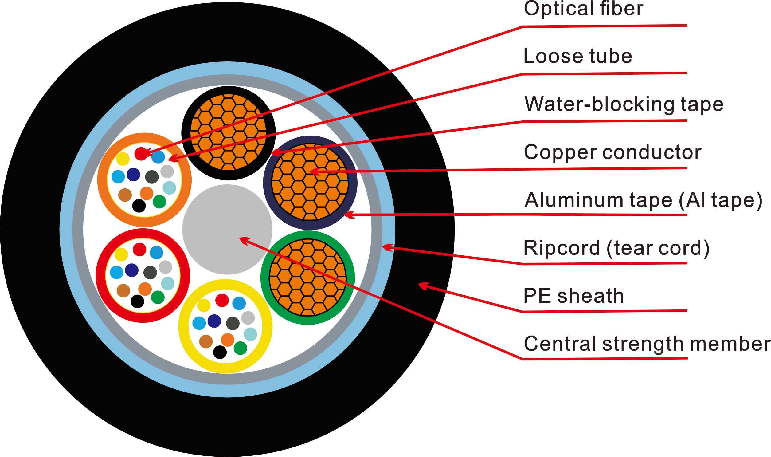 Outer sheath: PVC, PE, or LSZH; anti‑tracking jackets for aerial/ADSS‑like scenarios optional