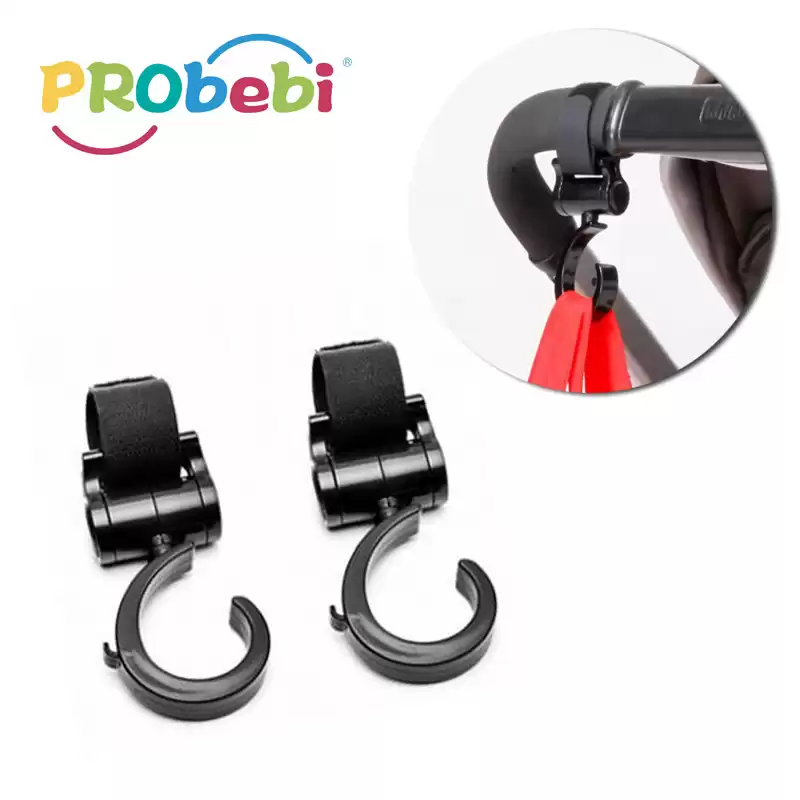 This stroller hanger can be rotated 360 degrees, it can hang the heavy things, that will help you to relief your hands,