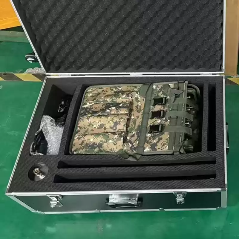 This backpack drone reconnaissance and strike device integrates detection and positioning, interference countermeasures, and terminal control. It is powered by an internal battery and can be flexibly carried around. It supports temporary deployment at high points or on the roof of a vehicle, enabling remote control. It can locate the real-time positions of mainstream drones and pilots, and display multiple information including longitude and latitude, orientation, distance, speed, and altitude. And it supports trajectory recording and electronic map display. In addition, the remote control of the equipment can reach up to 10 meters, to ensure the safety of the operators.