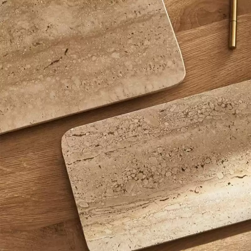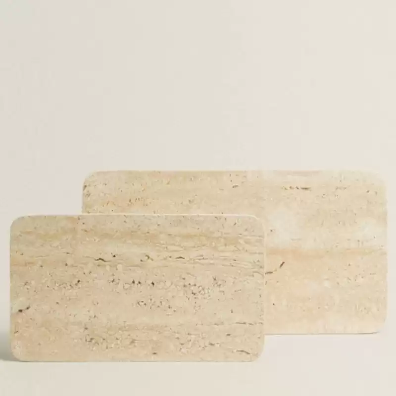 With its smooth edges, the Travertine Tray not only exudes sophistication but also provides a safe and stylish platform for your cherished items. Whether you're displaying candles, succulents, or keepsakes, this tray elevates your belongings to a new level of refinement.