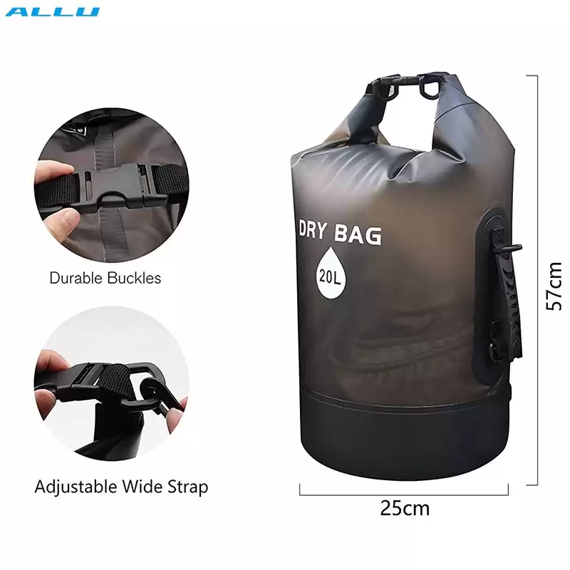 1. Made with wear-resistant PVC material: 0.6 mm thick at the bottom and 0.3 mm on the sides, this waterproof bag is easy to wipe clean and suitable for all kinds of weather and environment. Comfortable to carry during long outdoor activities