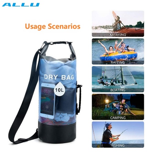 2. Transparent dry bag with 6 colors, easy to spot your clothes, towel, water bottle, phone, laptop and wallet. Quickly find what you items without digging. You can even read messages on your phone or pad through the bag