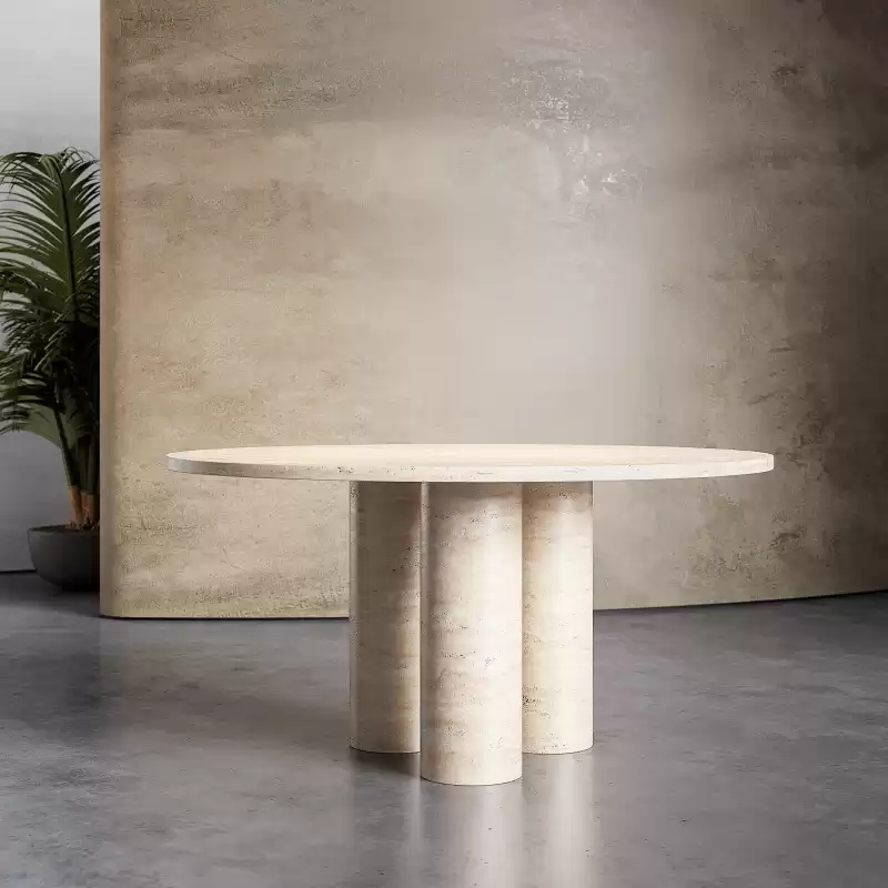 Round Travertine Dining Table With 3 Legs
