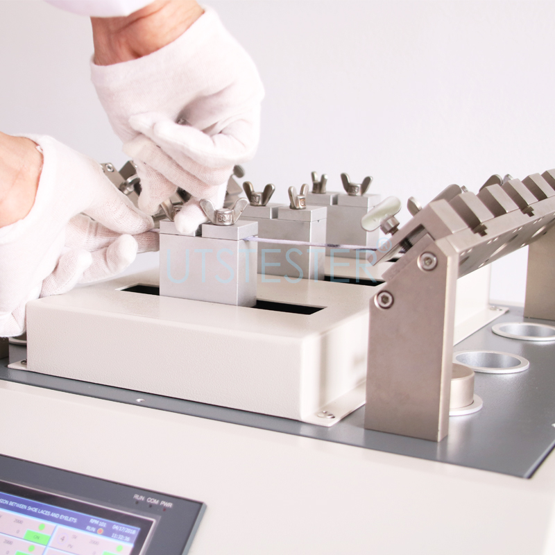 Shoelace Against Eyelets Abrasion Testing Equipment is used to determine the the resistance of all shoelaces and eyelets to abrasion.