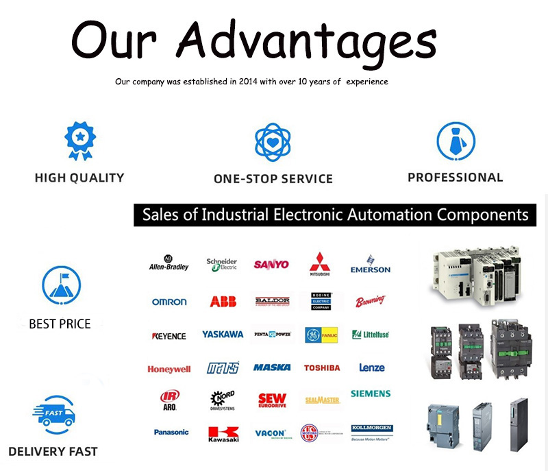 Relays, PLC module CPU, man-machine interface, touch screen, Inverter, servo motor + drive, CNC products, Solenoid Valves, Sensors, Encoders, Pressure Switch, Differential pressure switch,Cylinder,Switches, Contactor and Circuit breaker. And we guaranteed 100% new brand original, and we have a lot of stock with fast delivery by most suitable logistics channel.We will provide you with high-quality technical support and excellent after-sales service, and customer problems will be resolved as soon as possible.