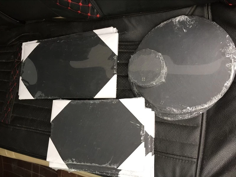 The natural slate plate with unique flaked edge,simply wipe clean with a wet cloth.It's popular used for dinner.If you are interested in it,please kindly contact us: export3@xmperfectstone.com. Best price with good quality will oddered to you as we can.