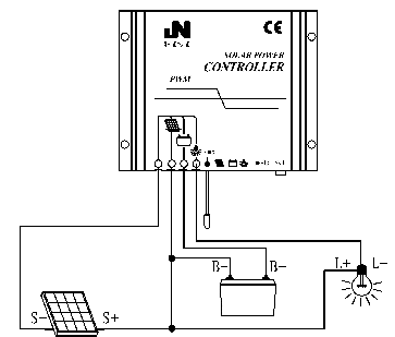 6. Connected load "-" pole: a load cable access controller load output current can not exceed the rated current of the controller.