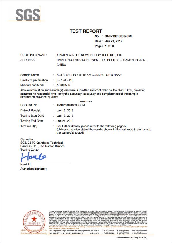 WinTop Solar brought forward the standardized and internationalized management concept at the beginning of its establishment, positively brought in and strictly applied ISO9001:2008,CP, APQP,FMEA,MSA, SPC etc international quality manage system in all phases including R&D, manufacturing, marketing and after service.We have strictly quality control 6S for all our products.