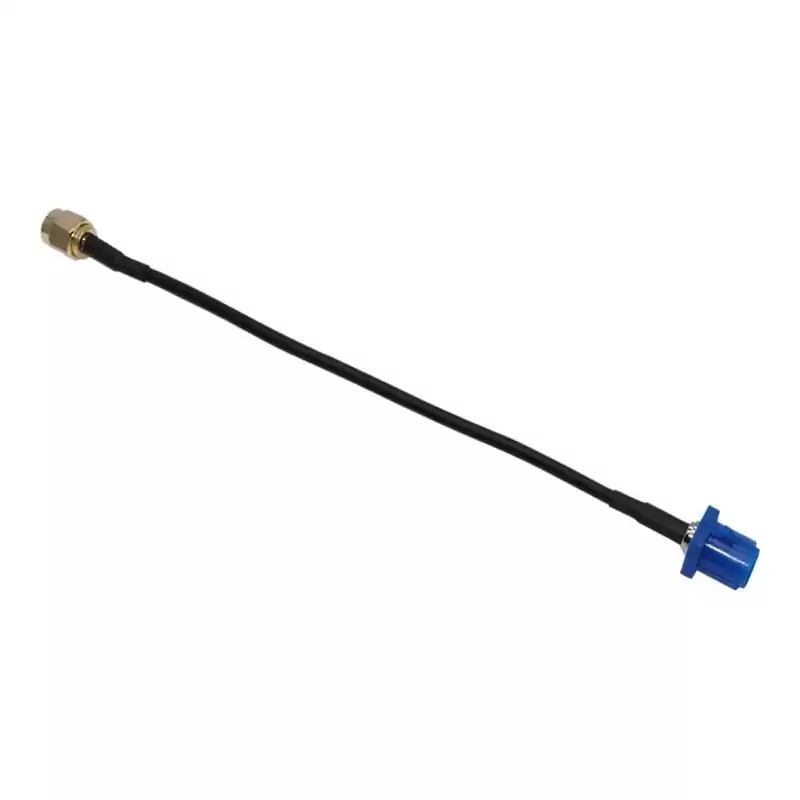 The SMA cable assembly can use corrugated, flexible, formable or semirigid coaxial cablesuch as 0.81mm, 1.13mm, 1.37mm, 1/4" Superflexible, LMR100, LMR-195, LMR200, LMR-240, LMR400, RG141, RG142, RG174, RG178, RG179, RG180, RG187, RG188, RG196, RG213, RG214, RG223, RG303, RG316, RG393, RG400, RG401, RG402, RG405, RG55, RG58, RG59, RG62, RG8, TFT-402 or Tinned 047 cable; the body of SMA to Fakra cable assembly is right angle or straight connectors which is female to jack, female to plug, male to jack or male to plug gender. This SMA female to Fakra plug cable assembly uses a 50ohm straight SMA for connector 1 and a 50ohm straight fakra for connector 2, Cable is 50ohm RG174.