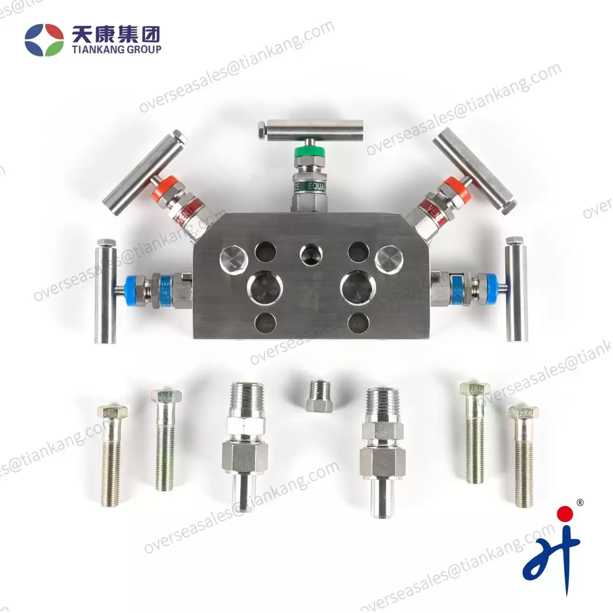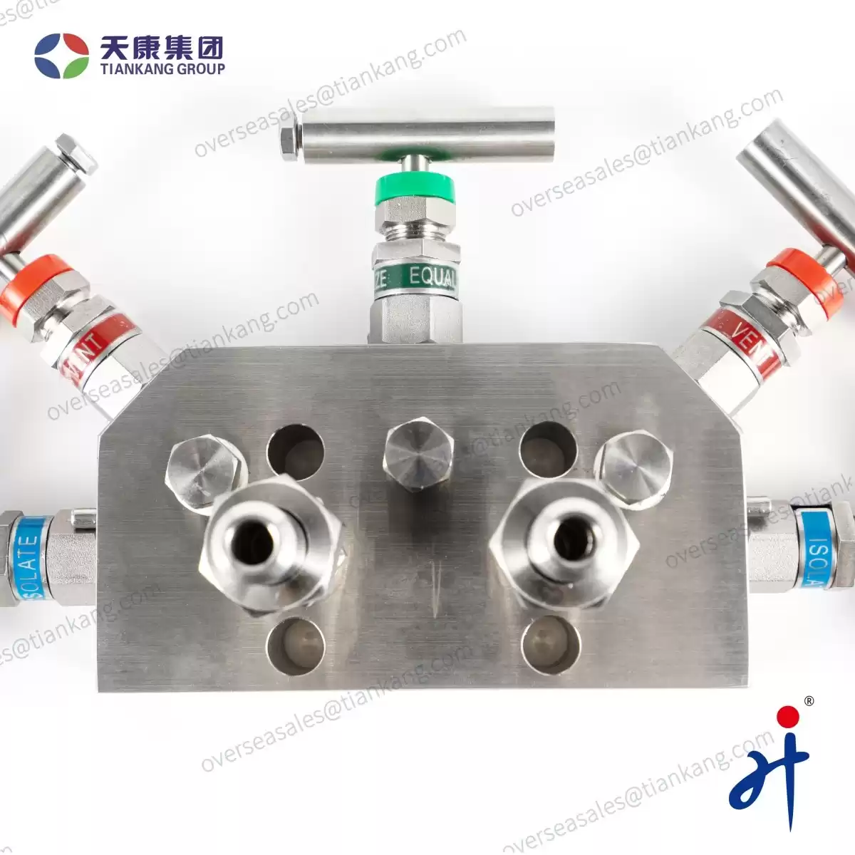 TianKang HongJi Coplanar Five Valve Manifold (for Gas) is specially engineered for natural gas transmission and measurement applications. Featuring a robust sector-shaped body, this manifold integrates two isolate valves, two equalize valves, and one vent valve to ensure safe, accurate, and stable pressure control. Its optimized internal flow path is designed to meet the demanding requirements of natural gas pipelines, metering systems, and pressure transmitters, providing reliable isolation, calibration, and system protection under continuous operation.