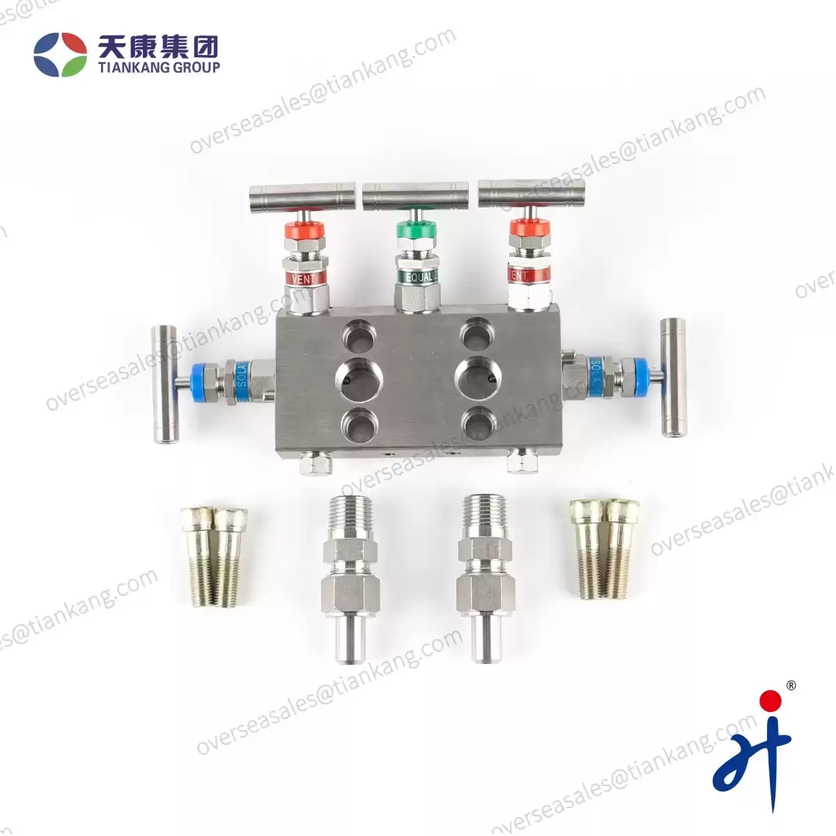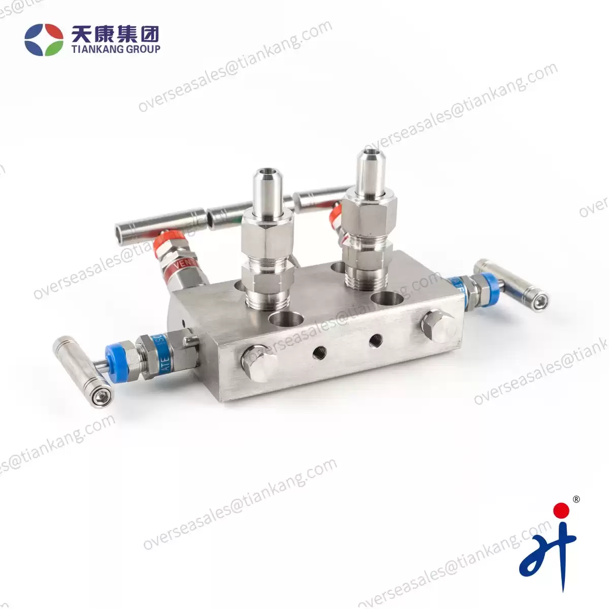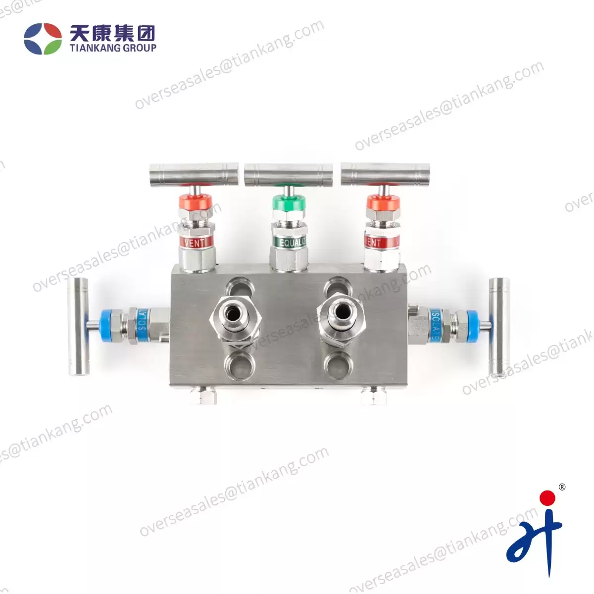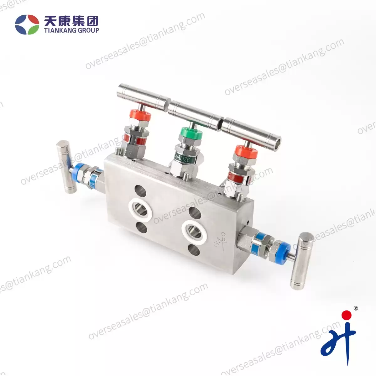 TianKang HongJi Integral Five Valve Manifold made by Hongji Instrument& Valve Manufacturing Co., Ltd. combine several valves in one body with multiple connections. This equipment assists pressure instruments such as pressure gauges, pressure transmitters, and differential pressure transmitters directly and indirectly in measuring and equalizing pressures, differential pressures, static, gauge, and variable in process instrumentation lines by bleeding, blocking, and calibrating.