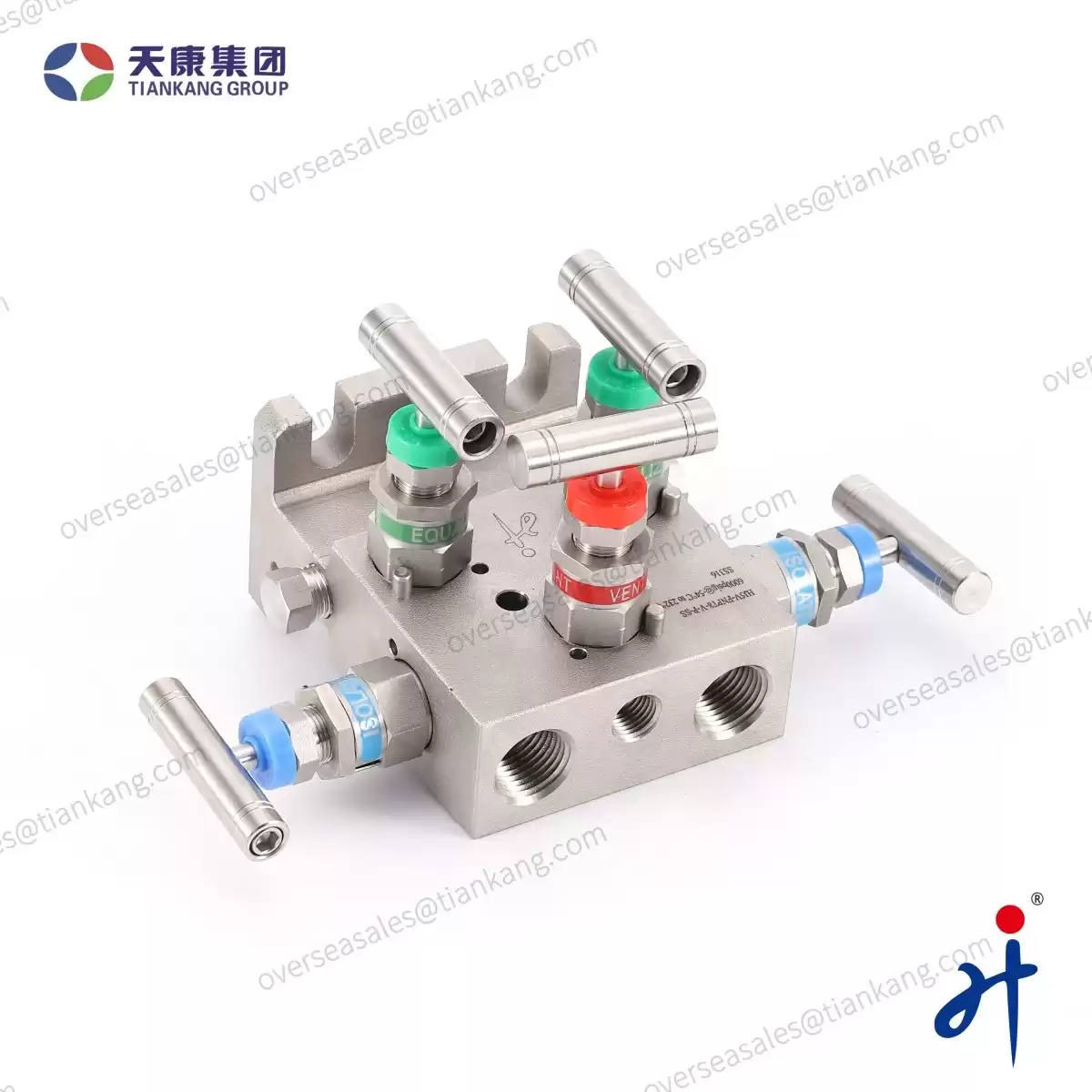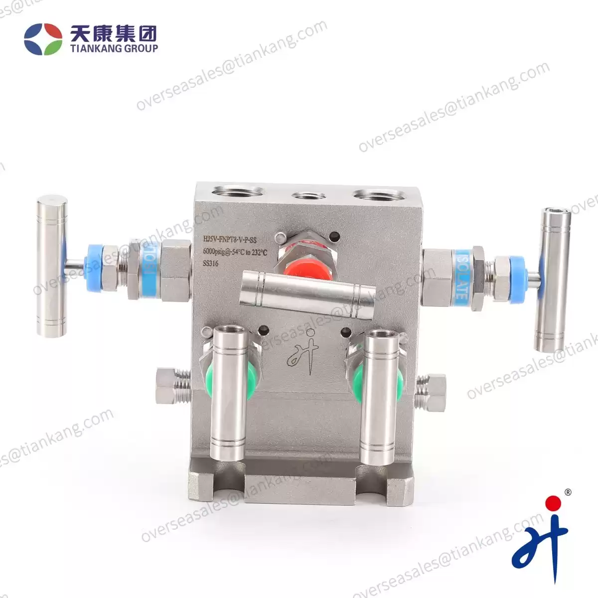 Tiankang Hongji T Type Five Valve Manifold made by Hongji Instrument& Valve Manufacturing Co., Ltd. combine several valves in one body with multiple connections. This equipment assists pressure instruments such as pressure gauges, pressure transmitters, and differential pressure transmitters directly and indirectly in measuring and equalizing pressures, differential pressures, static, gauge, and variable in process instrumentation lines by bleeding, blocking, and calibrating.
