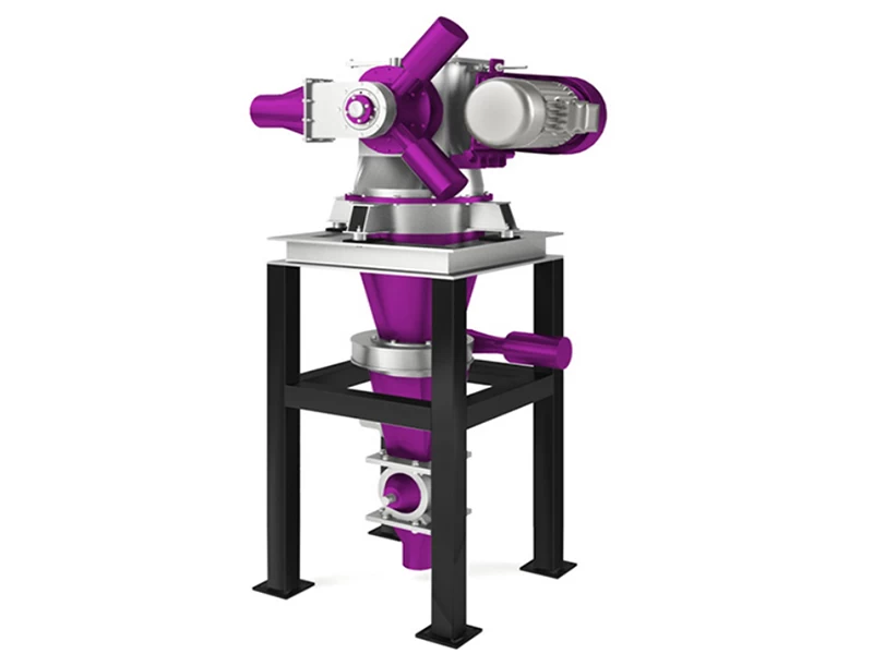 The product is fed either via a rotary valve or in the case of an air-flow classifier, entrained in the classifying air. Product fineness is controlled by adjustment of the classifier wheel speed using a frequency converter. The horizontal arrangement of the classifying wheel means that even "difficult" products can be processed with no problem.